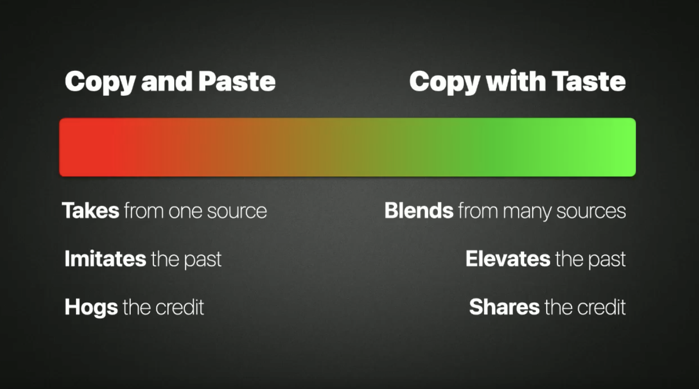 Using Beyoncé as a case study, Jon revealed how successful creators "copy with taste" rather than simply copying and pasting. He showed clips of Beyoncé drawing inspiration from a range of sources, from 1969 choreography to street dances from Mozambique.