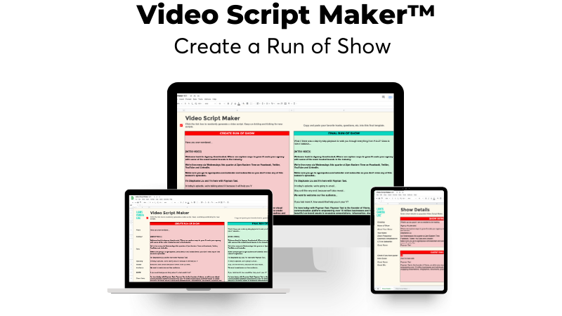 Video Script Maker™ is a collection of hard-hitting, heart-pounding hooks, and headlines destined to make your next livestream absolutely legendary. $49.00 USD